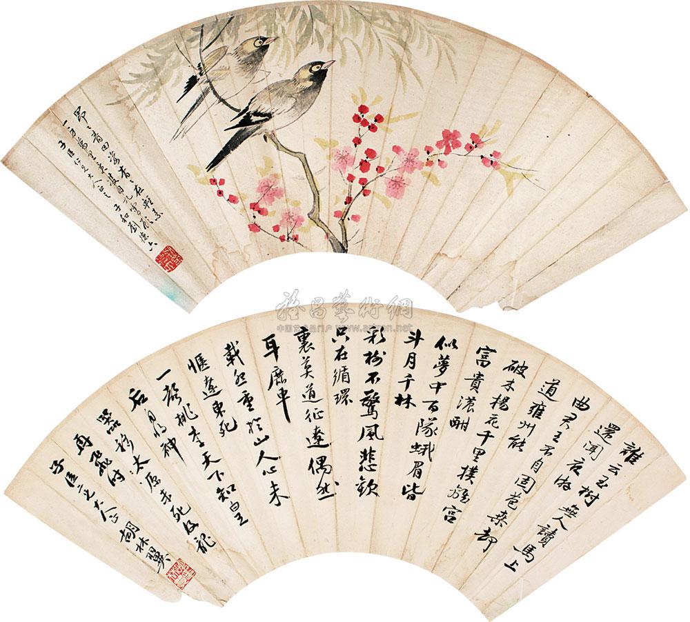 花鸟 扇面 设色纸本 |