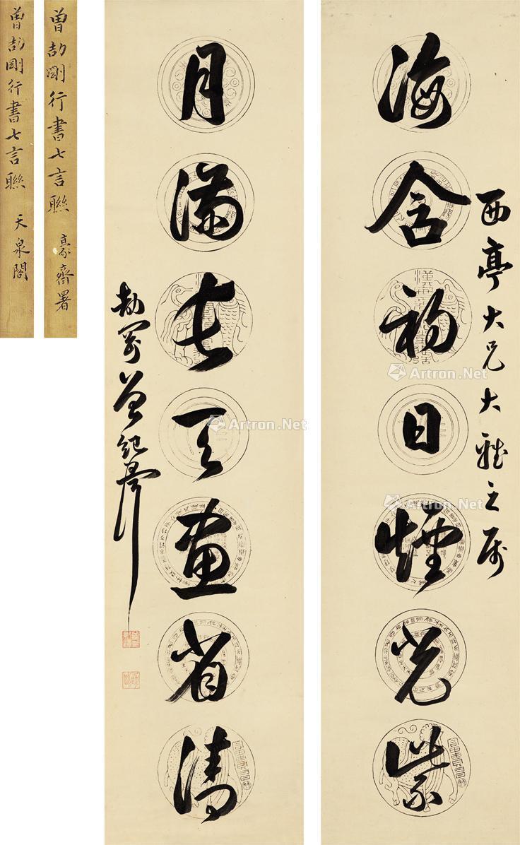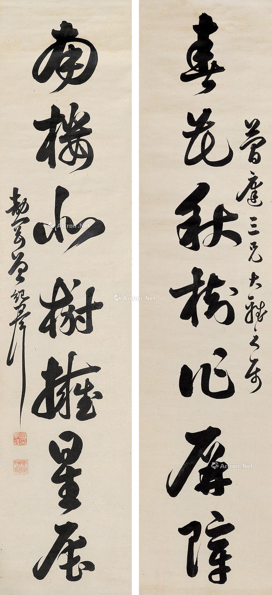 楷书七言联 立轴 水墨纸本 |