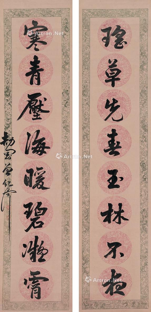 楷书七言联 (二幅) 立轴 水墨笺本 |